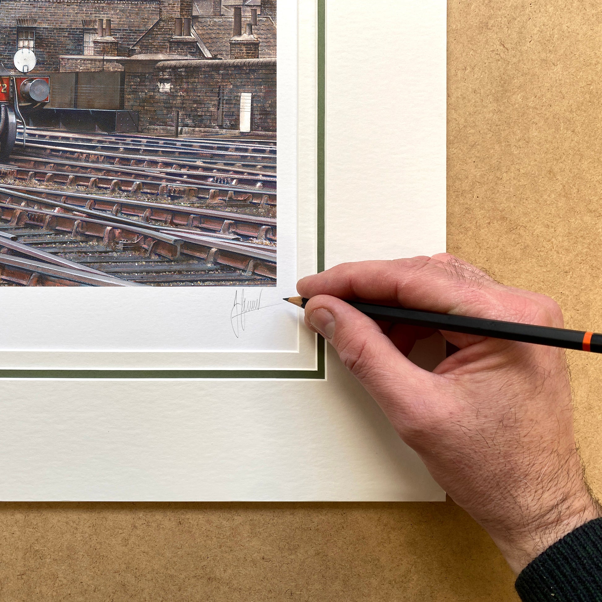 James Green is a renowned railway and landscape painter. He achieves his detailed works by mixing acrylic ink and watercolour, slowly layering the paint in such a way to give to his paintings a distinctive realistic look.