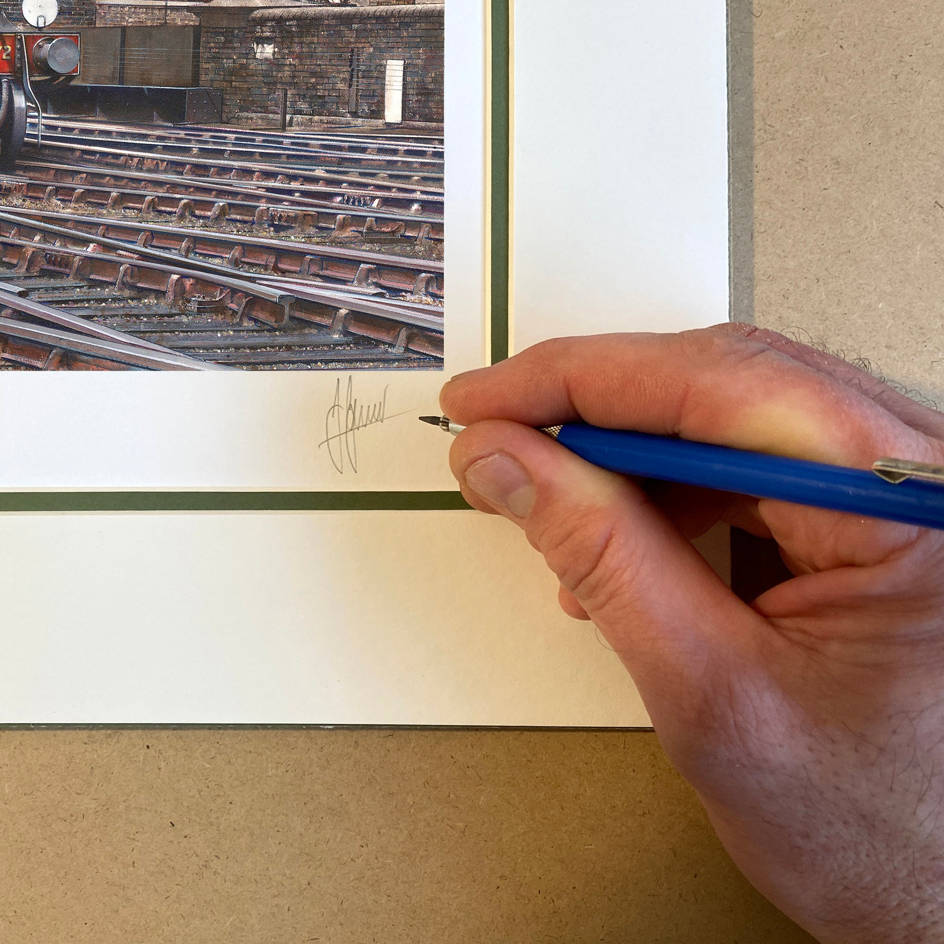 James Green is a renowned railway and landscape painter. He achieves his detailed works by mixing acrylic ink and watercolour, slowly layering the paint in such a way to give to his paintings a distinctive realistic look.