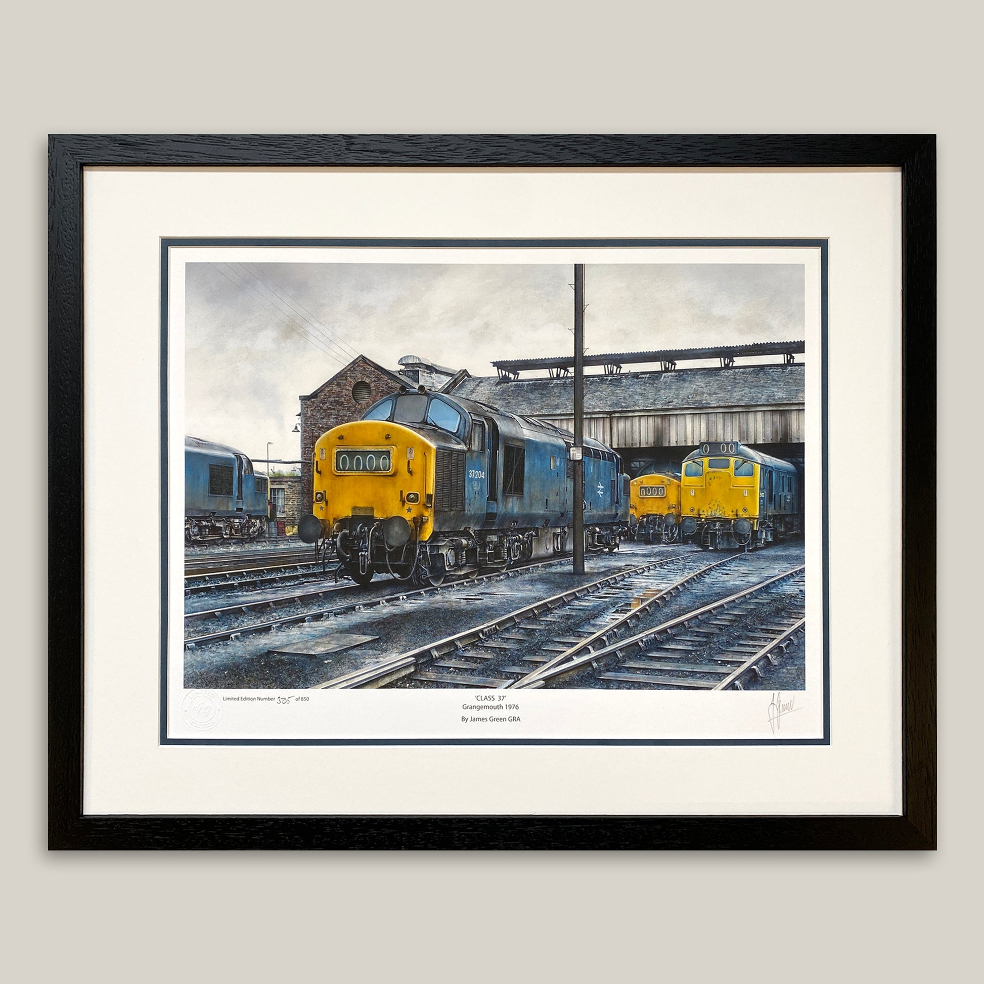 'Class 37 at Grangemouth 1976' limited edition print. This painting won the George Busby Award for best water based painting at the Guild of Railway Artists 2018 exhibition.