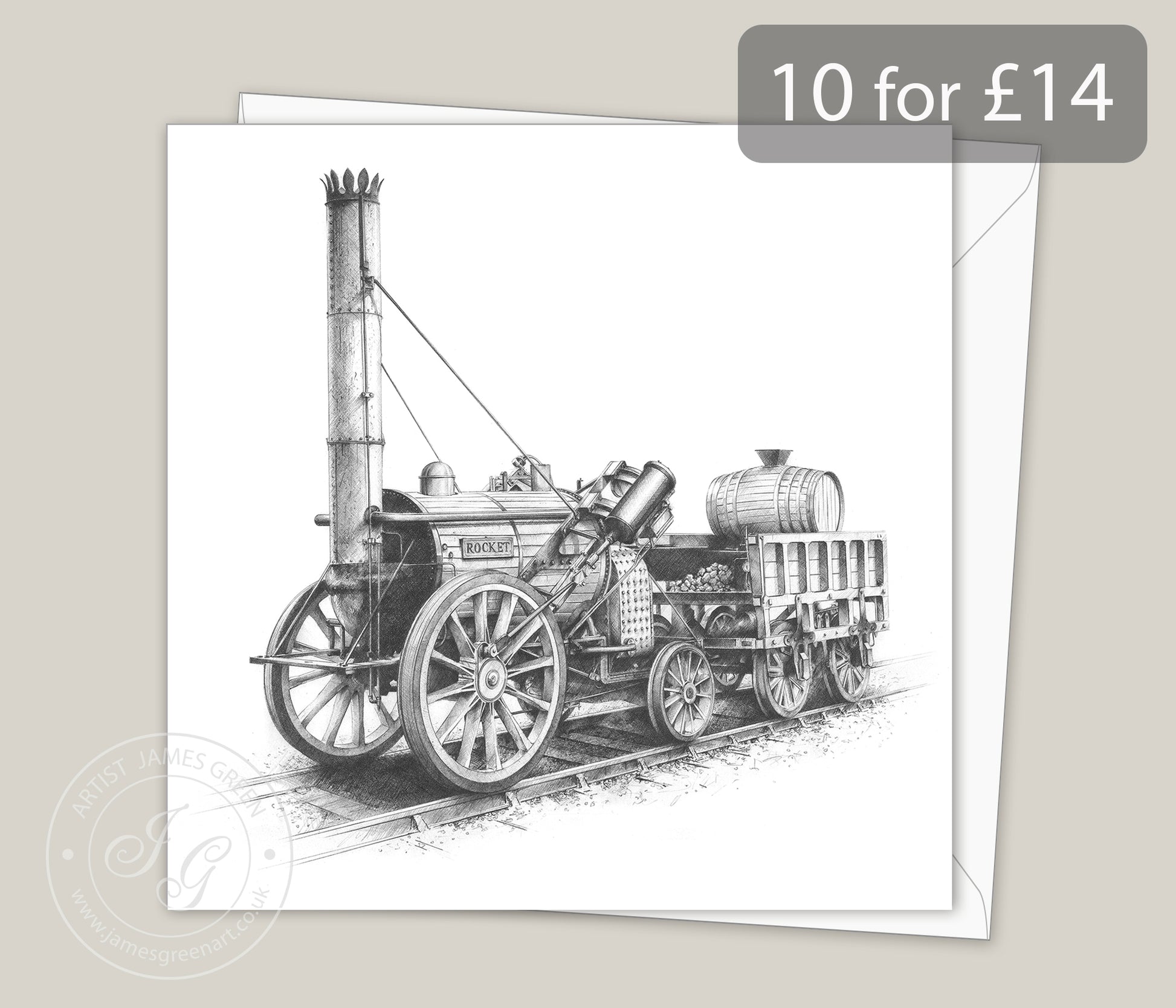 Artwork on the card from a pencil drawing by James Green GRA.