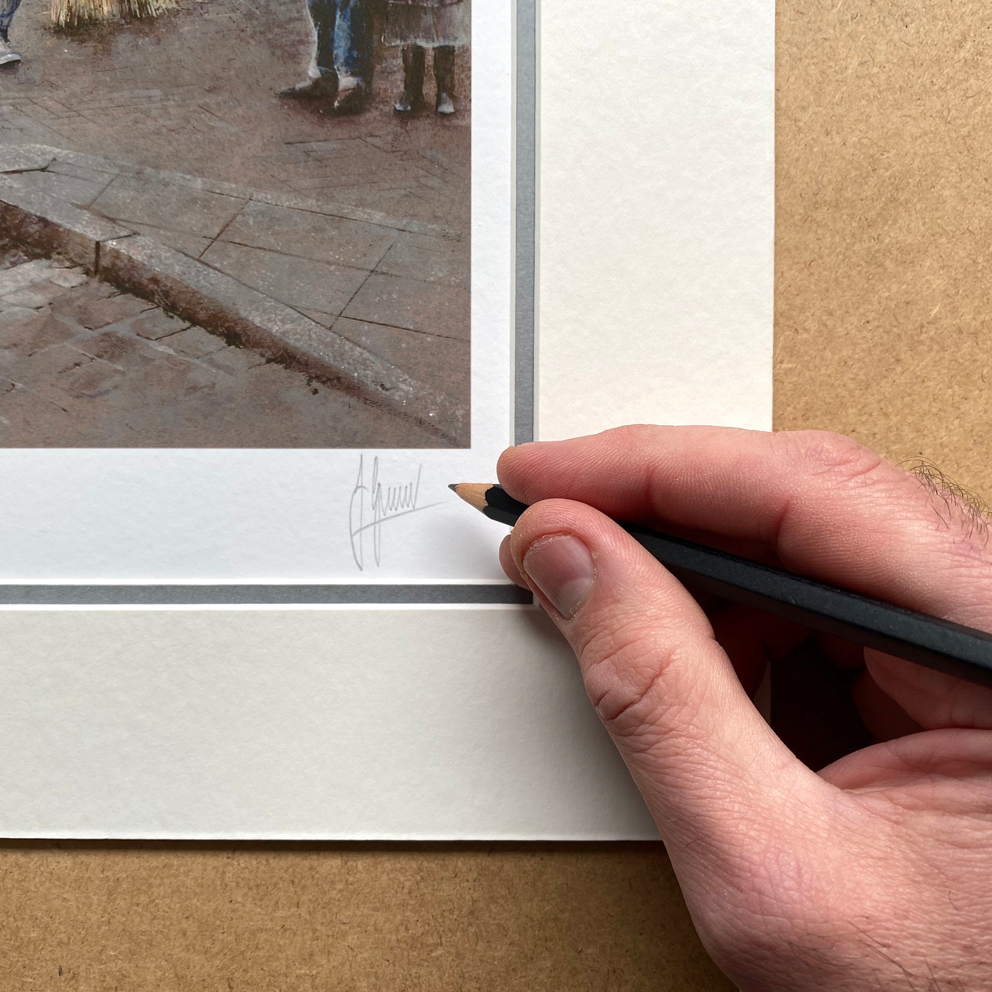 The picture will arrive beautifully presented with a double mount and hard MDF backing in a clear polly bag for a gift like appearance (not just rolled in a tube!)